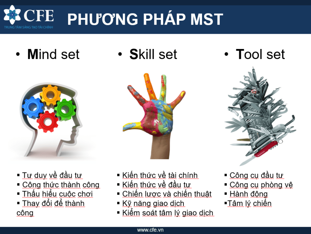“Phương pháp MST” độc quyền của CFE. Phương pháp được giảng viên chia sẻ dưới hình thức các GAME tình huống giả định liên tục thay đổi. Khóa học được chia thành các modul nhỏ, tổ chức dưới hình thức workshop. Đồng thời, phương pháp này còn giúp trang bị cho bạn về Tư duy, Kỹ năng và công cụ đầu tư phù hợp. Sự chuẩn bị kỹ lưỡng và toàn diện sẽ giúp bạn hiểu được bản chất của “cuộc chơi” và có “cách chơi” phù hợp, luôn đảm bảo chiến thắng trong dài hạn.